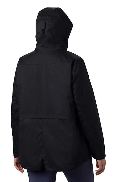 This 3 in 1 jacket has a waterproof shell and an insulated liner. The outer shell is great for cool, wet weather, with adjustable hood and cuffs, longer back hem, and secure pockets. The insulated liner is just right. It also has pockets for gloves and cold hands.