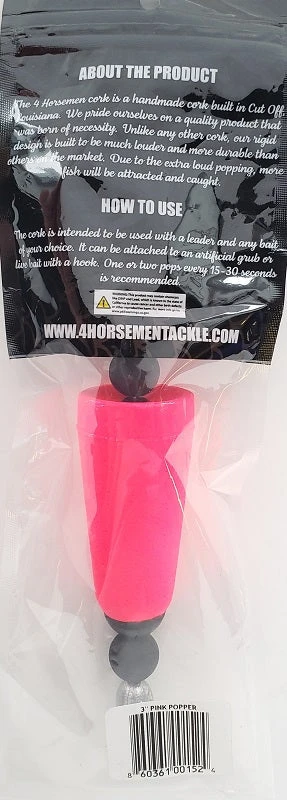 Four Horsemen Tackle Concave Popper Cork Pink 3″ 1pk