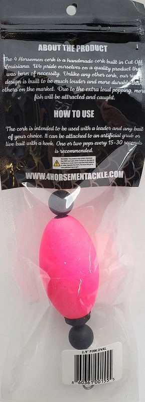 Four Horsemen Tackle Oval Popper Cork Pink 2-1/2″ 1pk