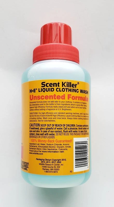 The first step in scent elimination is odor free clothes. The liquid clothing wash is a really good unscented formula for hunters who prefer a liquid instead of a powder. It is a different formula from the powder. The product really works great at cleaning and removing human odor. It is also a high efficiency formula that rinses very clean and contains no U.V. brighteners.