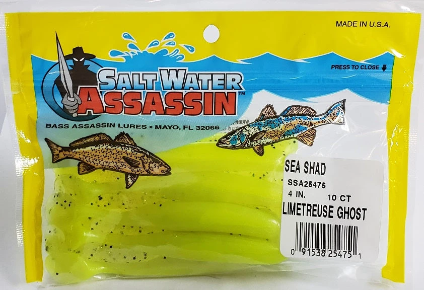 SaltWater Assassin Sea Shad Limetreuse Ghost 4″ 10ct