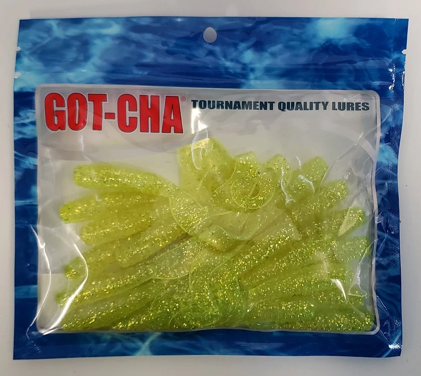 Sea Striker Got-Cha Curltail Grub Chartreuse/Silver Flake 4″ 20pk